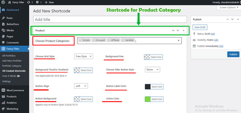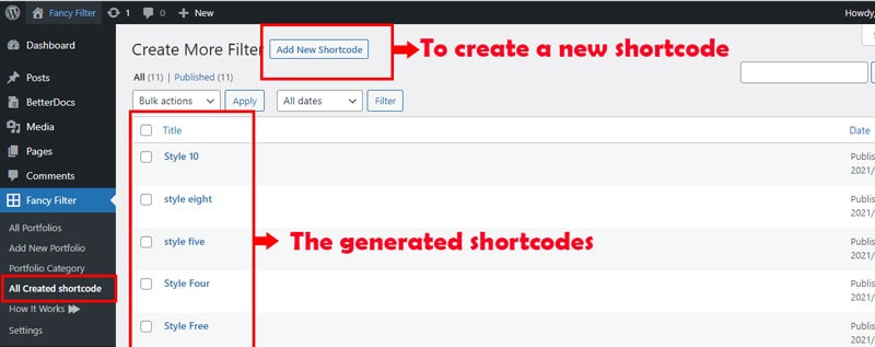 On this page, you can create more different shortcodes for portfolio filter, product filter, post filter. please follow the step by step instruction